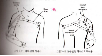 - 어깨-안장 하니스의 의지에 가해지는 장력이 건측의 액와에 장력이 전달되지 않고