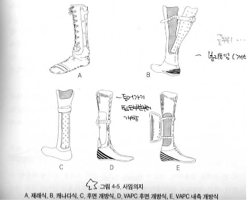 - 보행진출기에서 경골 압박이 가해지므로 경골능을 따라 압박이 경감되도록 제작되어야함