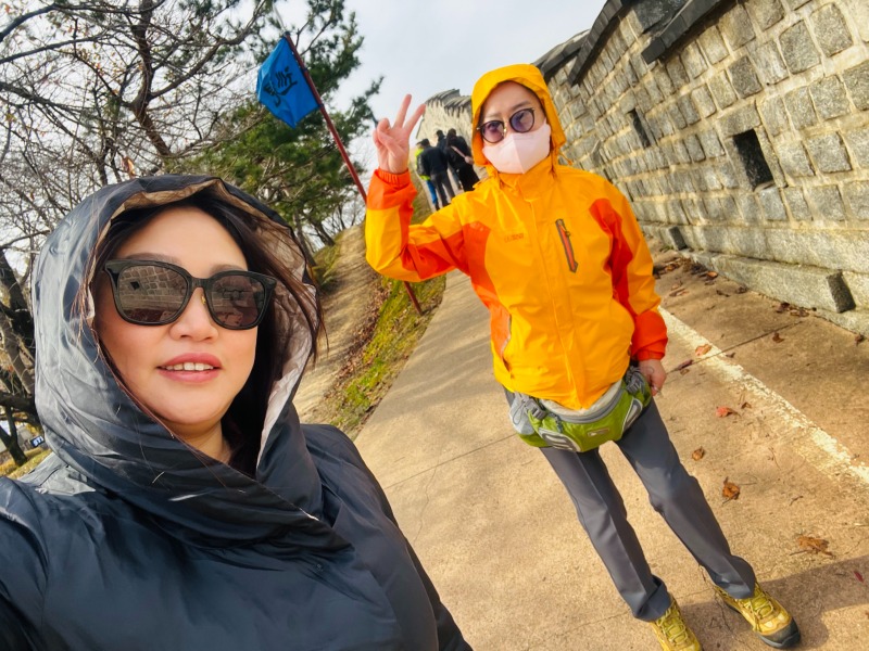 오늘 일정인 수원화성 둘레길에 대해서 설명을 듣고있습니다.