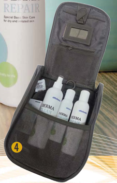 //환부관리용 더마케어키트 3가지(세척제,예방로션,치유로션)와 여행용 세면도구 가방의 키트 입니다.